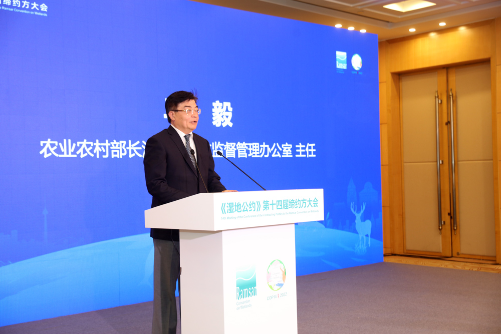 MENG Xianlin, director of the COP14 Executive Committee Office, addressed at the Forum on Protecting the Yangtze, a side event of the 14th Meeting of the COP14, November 8, 2022. (Credit: IHB)